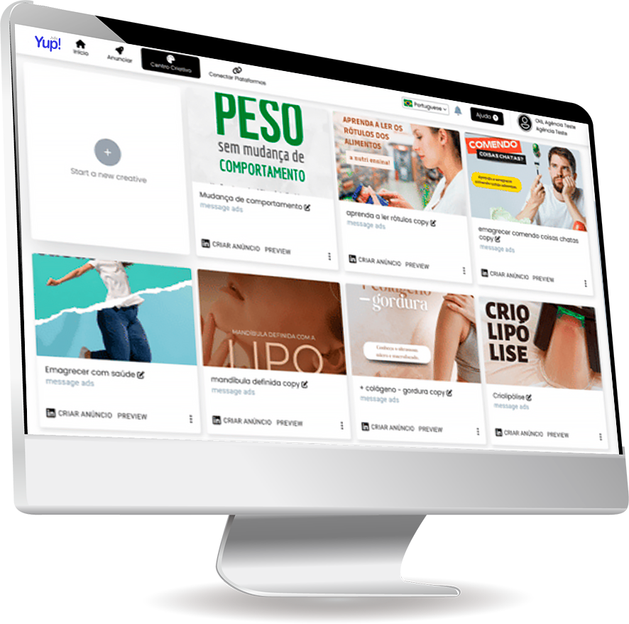 Disponibilizamos no centro criativo modelos prontos para suas campanhas. Então você escolhe o modelo e lança em poucos cliques.